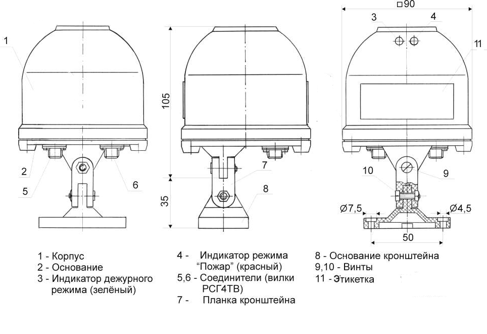| Габаритные размеры извещателей | не более 90x90x105 мм | ||