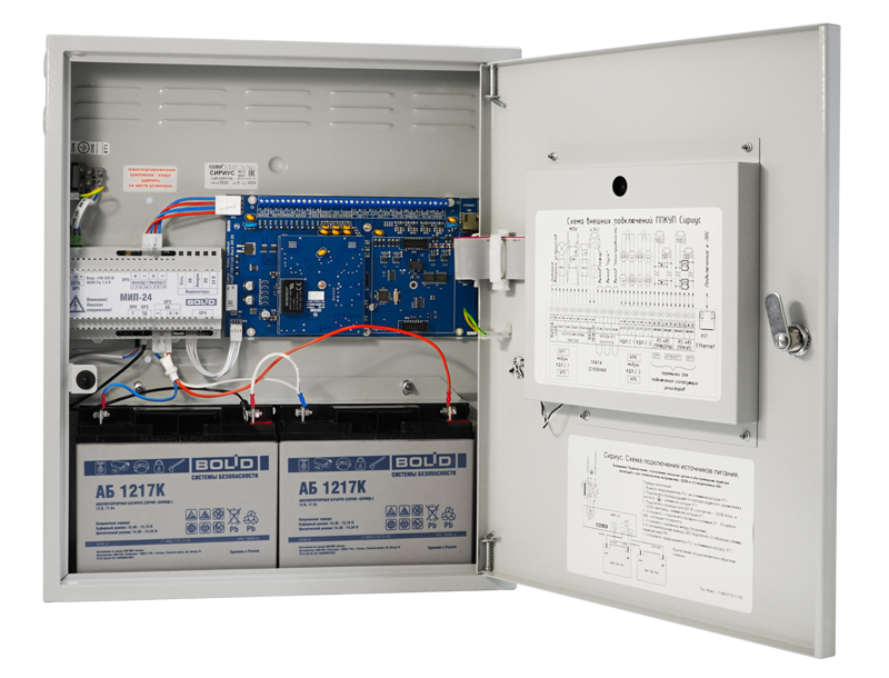 | Резервное питание | две АКБ 12 В емкостью 17 А∙ч включенные последовательно | |