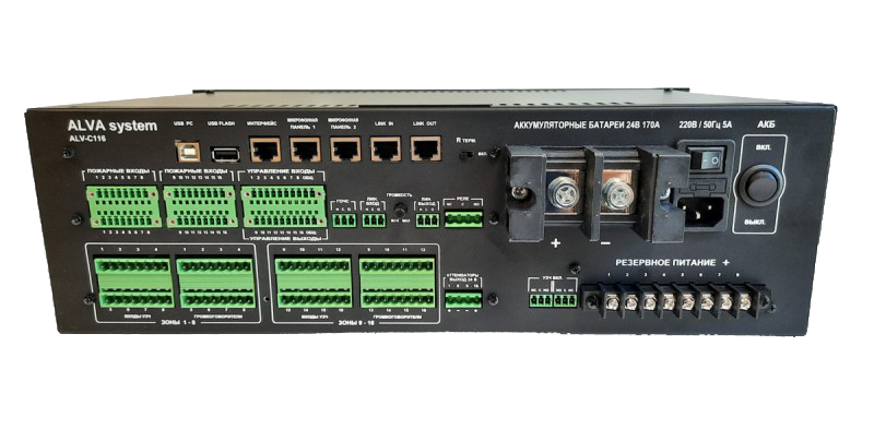 Обеспечивает трансляцию сигналов, тревожных сообщений, команд диспетчера и музыкальных файлов по 16-ти зонам трансляции в соответствии с текущим режимом работы, в том числе по программируемым сценариям эвакуации. Подключение к системе ОПС, блоку сопряжения с системой ГОЧС. Выполняет контроль исправности линий связи. В зонах оповещения могут применяться аттенюаторы, отключаемые по сигналу контроллера. Настройка выполняется с помощью программного обеспечения при подключении ПК. Файлы голосовых сообщений записываются в формате МР3 в память контроллера (до 250 шт) и практически не ограничены по размеру. Возможно создание 16-ти гибких сценариев эвакуации. Максимальная подключаемая нагрузка до 3кВт (6 усилителей ALV-PA500).